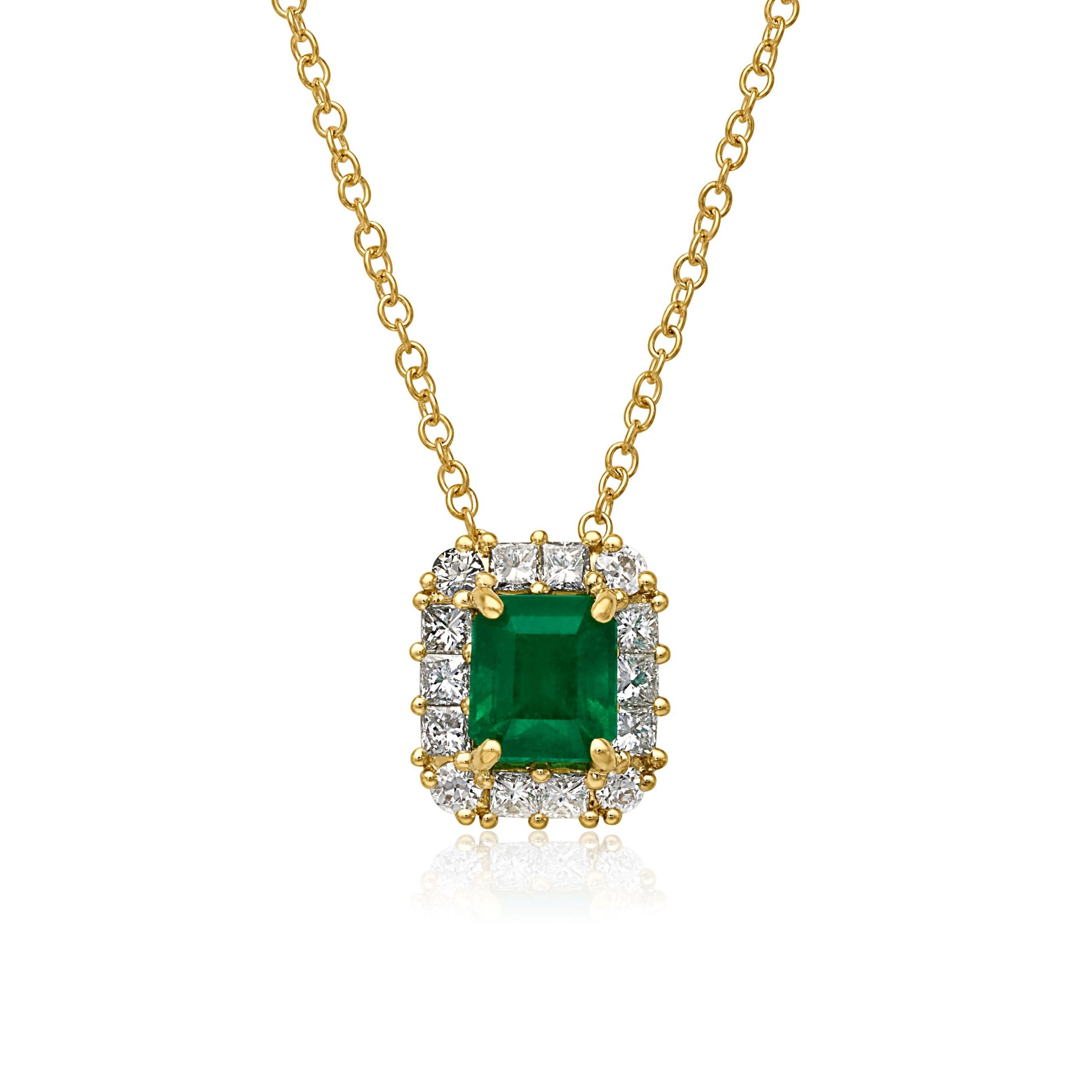 18KY 1ct Emerald-cut Emerald w/.51ctw (14)RB Diamond Pendant on 18" D/C Cable Chain w/Fancy Lobster-Claw Clasp (Columbian Emerald)