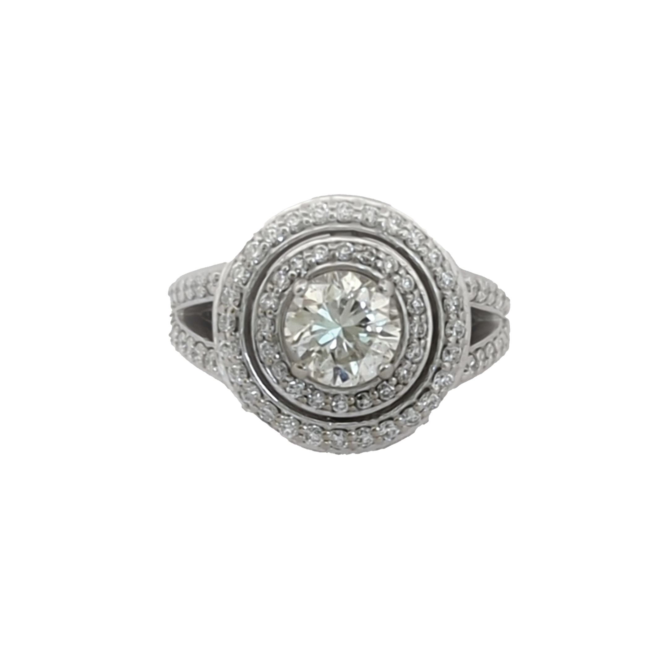14KW 1.01ct RB w/.72ctw L-I1 RB Diamonds Double-halo RingĀ Size 4.5