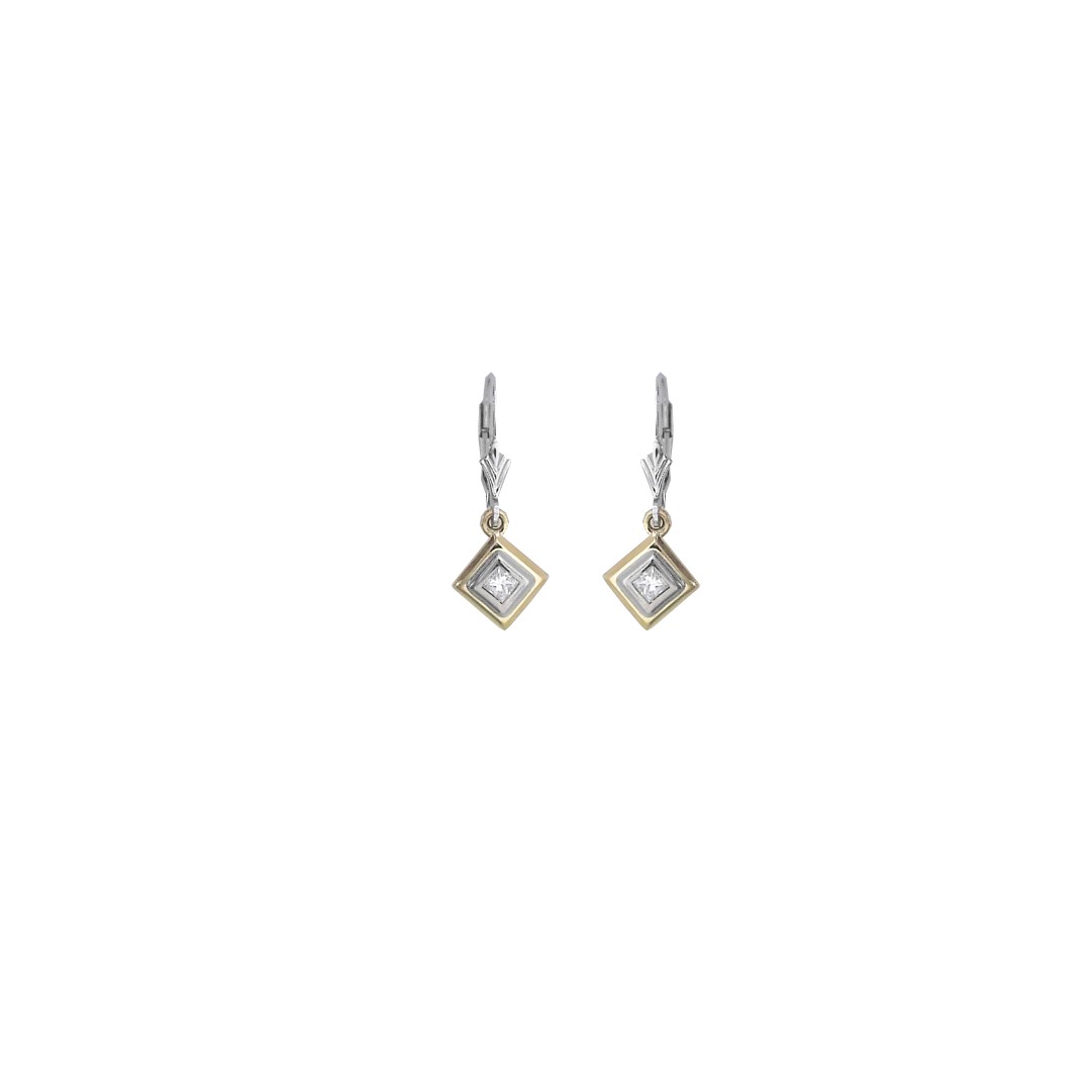 14KYW G-VS2 2.5mm Square Bezel-Set Dangle w/Fleur-de-Lis Lever Back Earring Top