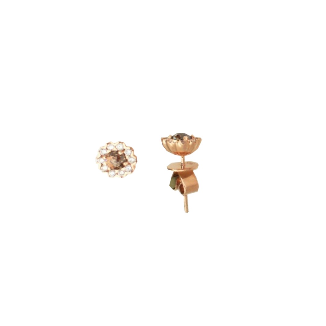 14KY .78ctw Brown-SI1 (2)RB Diamonds w/.40ctw (10)RB H-SI1 Diamond Halo Post Earrings.
