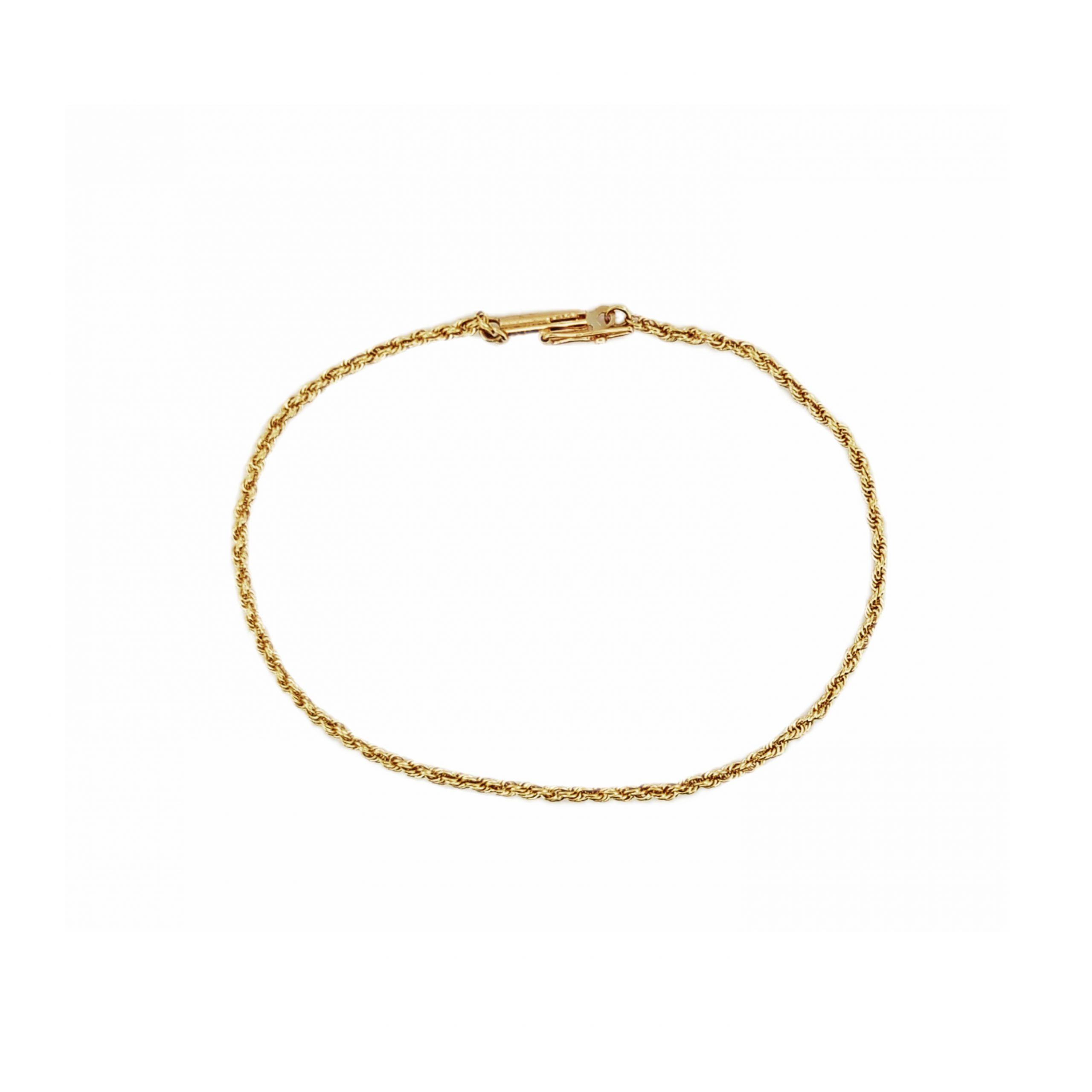 14KY 7″ 1.3mm Rope Chain Bracelet w/ Barrel Clasp