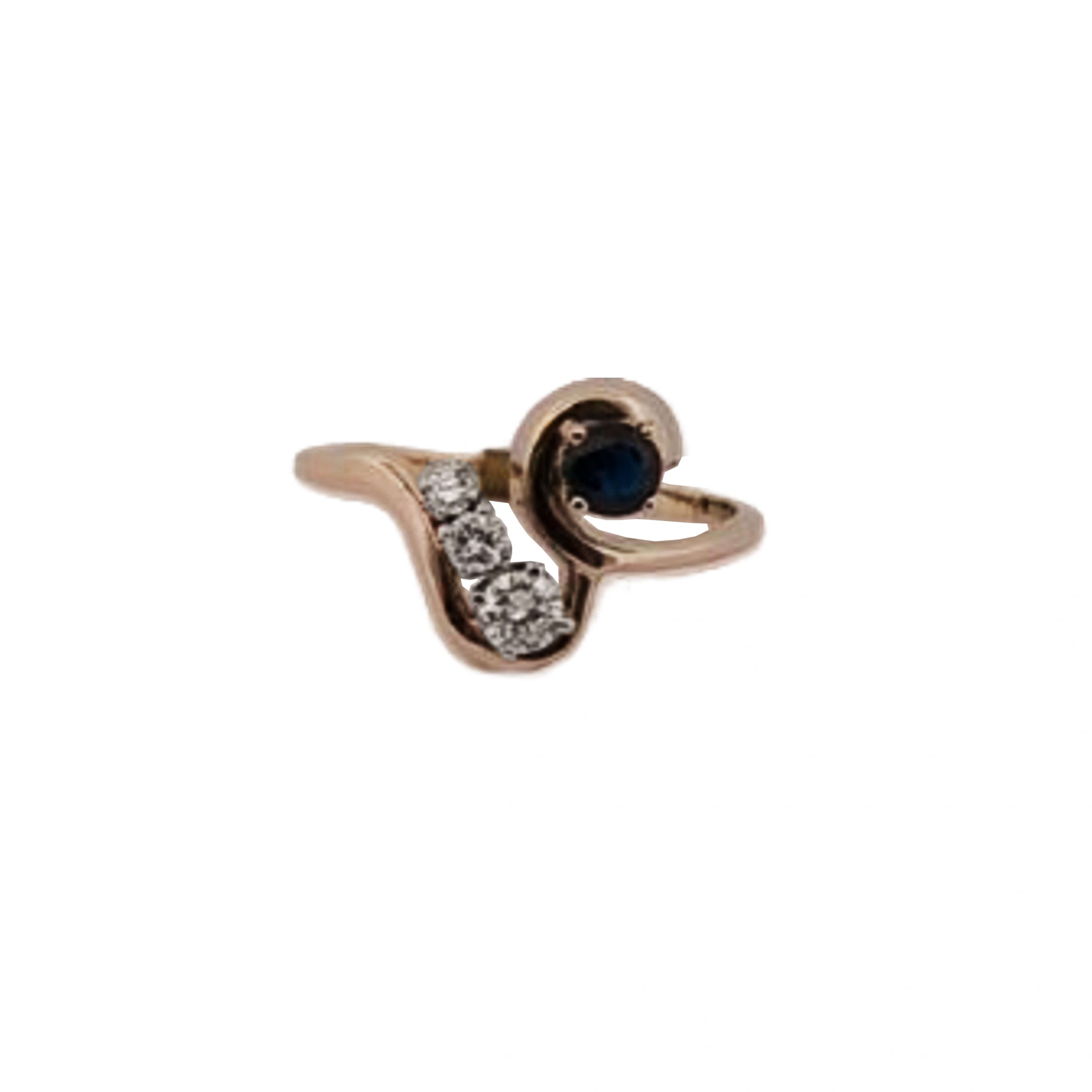 14KW 4mm RD Sapphire w/.15ct, .06ct, .04ct G-H SI1 RB Diamond Ring Size 8.25