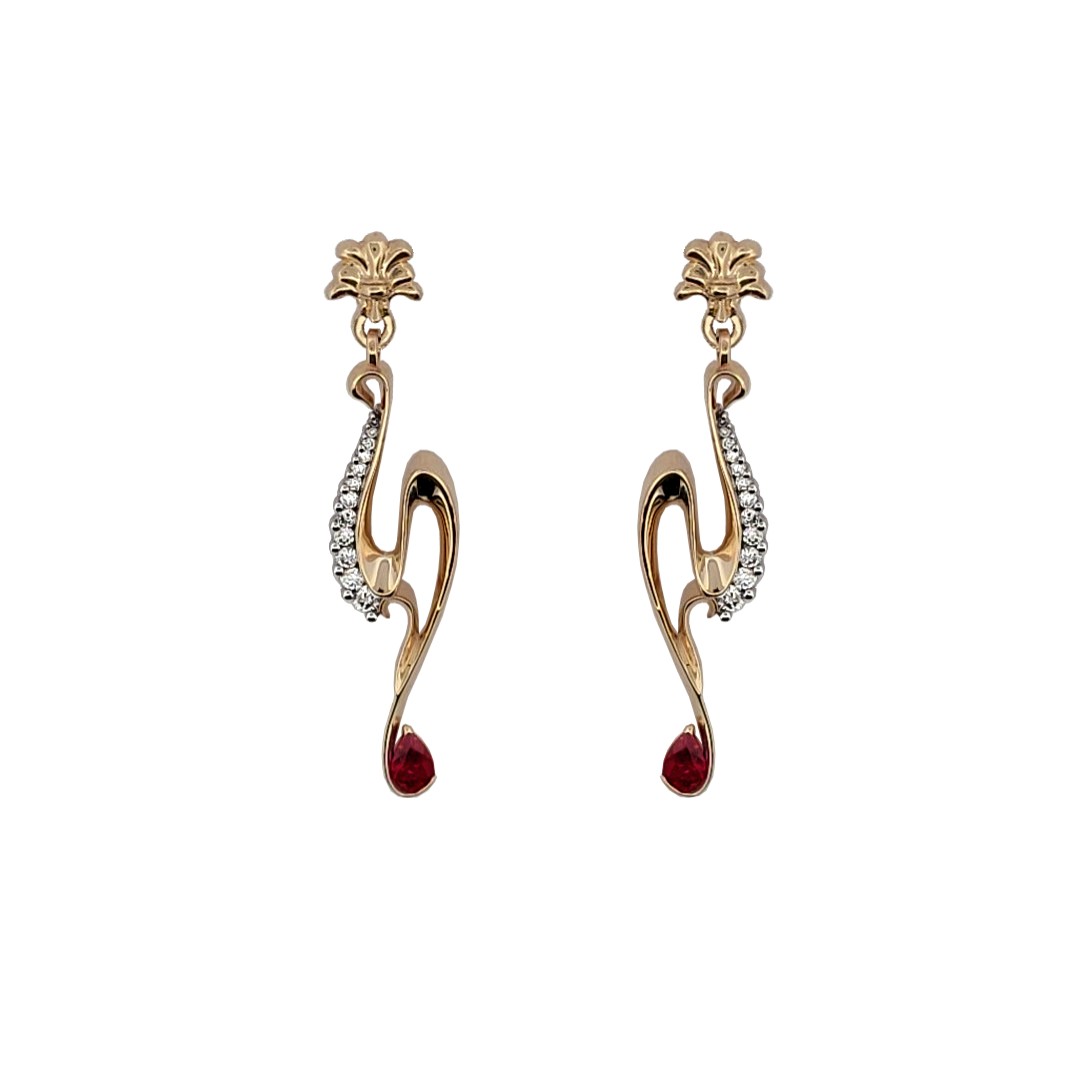 14KY .45ctw (2)Pear Ruby w/.22ctw G-H, SI1-2 RB Diamonds Art Nouveau Long Dangle Post Earrings